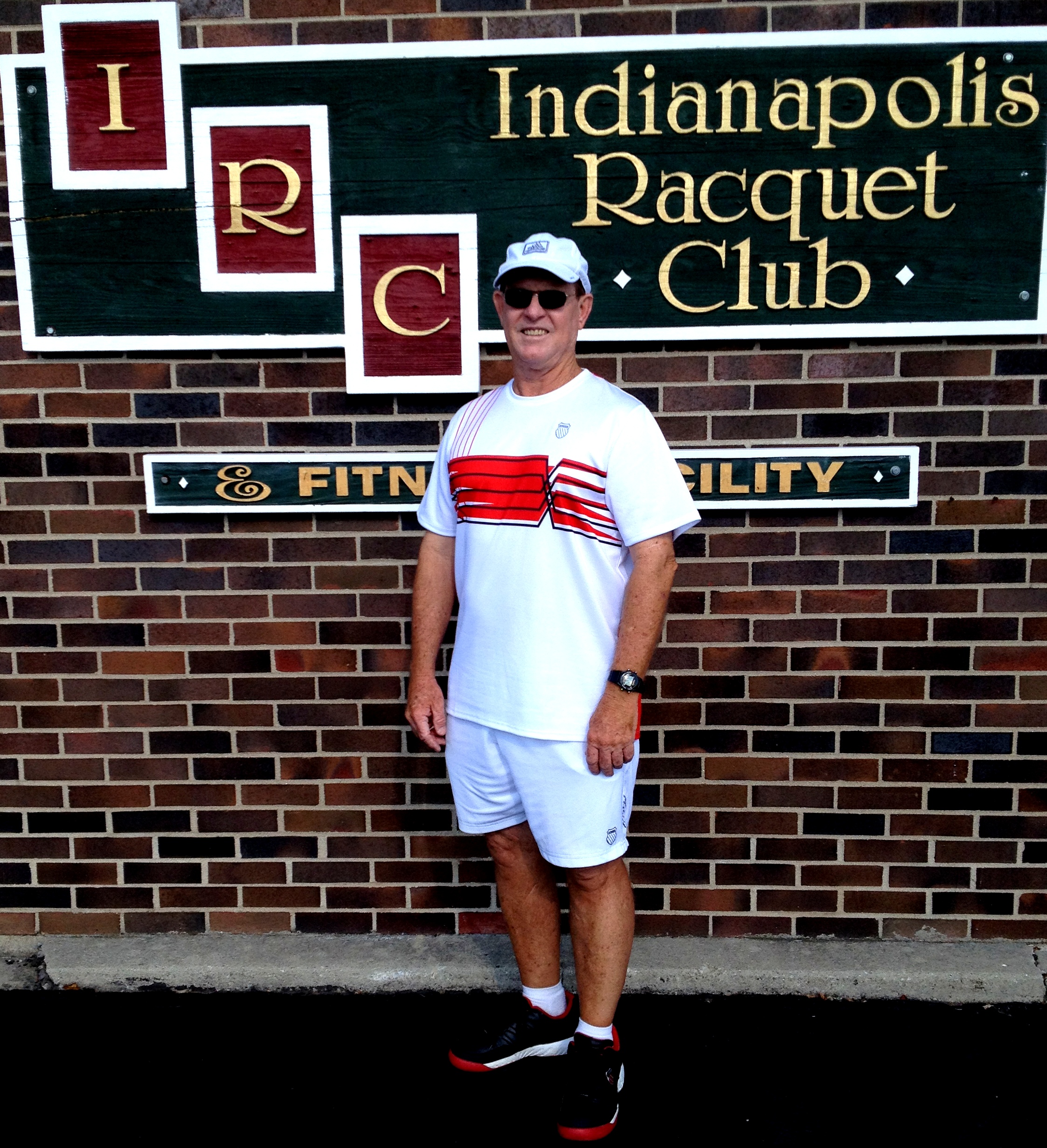 Coach Des Evans proudly standing outside the Indianapolis Racquet Club.